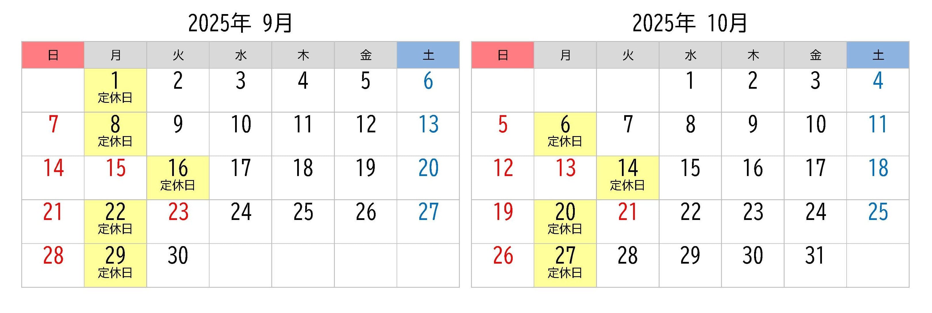 定休日 月曜日(月曜日が祝日の際は翌平日)