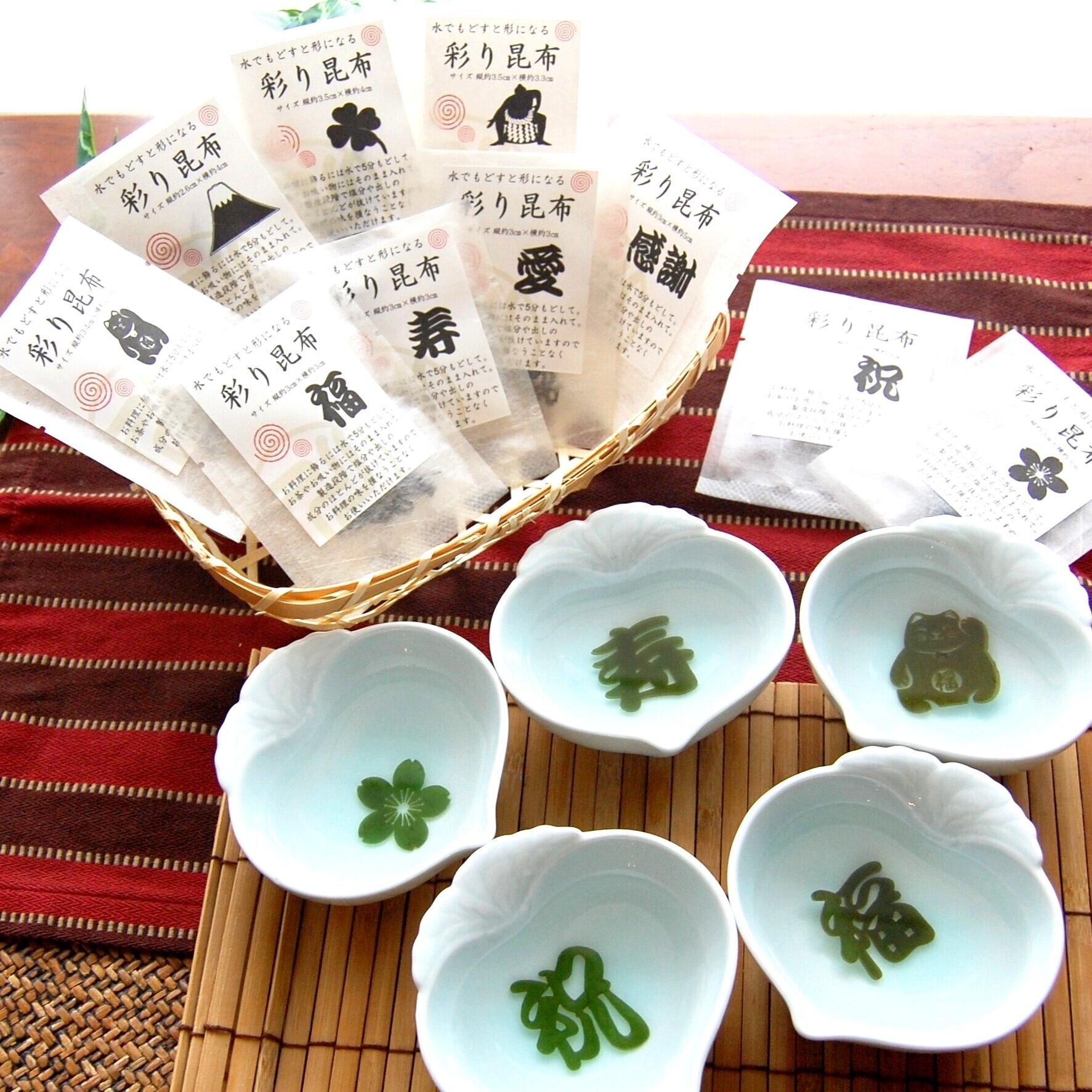水でもどすと「もみじ」の形になる昆布。