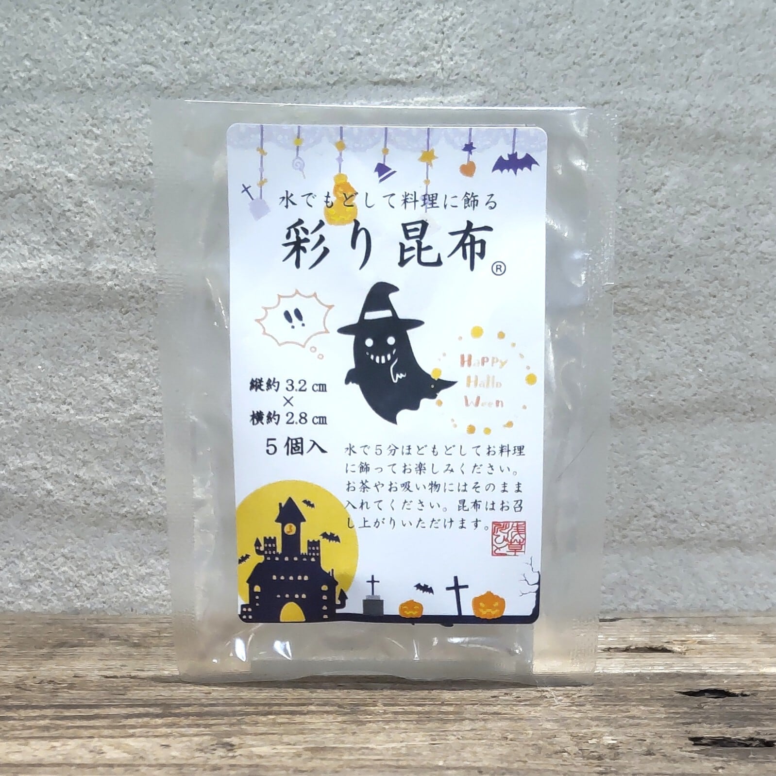 水でもどすと「ハロウィンおばけ」の形になる昆布。